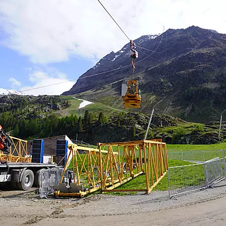 Mit dem Aufbau der Stütze der Gletscherseilbahn wurde am 22. August begonnen. Erstaunlich was in etwas mehr als einer Woche alles passiert!