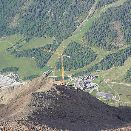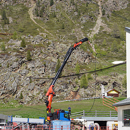Auch an der Bergstation wird fleißig gearbeitet. Es wurde die Straße unter der Gletscherbahn verbreitert, ein Kran aufgebaut und das Dach abgetragen.