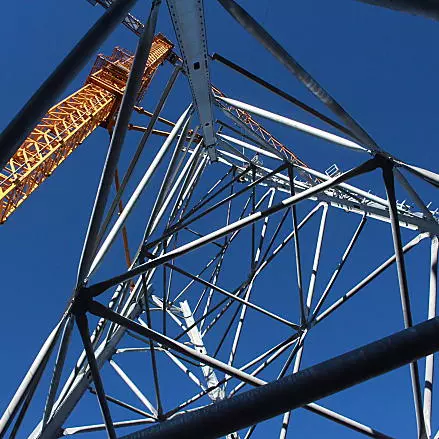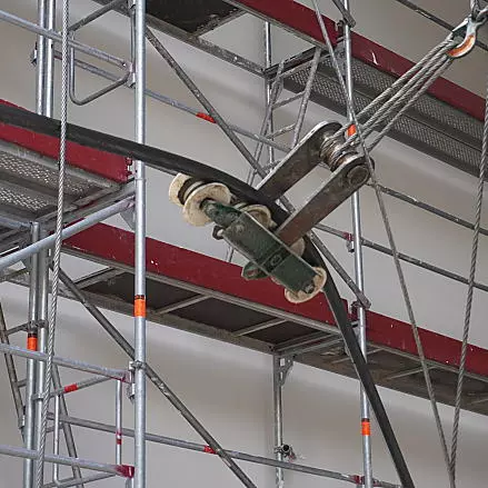 Am 6. Juni wurden die einzelnen Kranteile mittels Materialseilbahn von der Firma Moosmair zur Stütze hoch transportiert.
