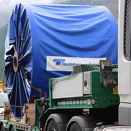 Am Mittwoch, den 20. September, wurde das Tragseil für die neue Pendelbahn mit einem Sondertransporter angeliefert. An der Talstation wurde das 2.610 Meter lange und 43 Tonnen schwere Tragseil zu Boden gebracht.