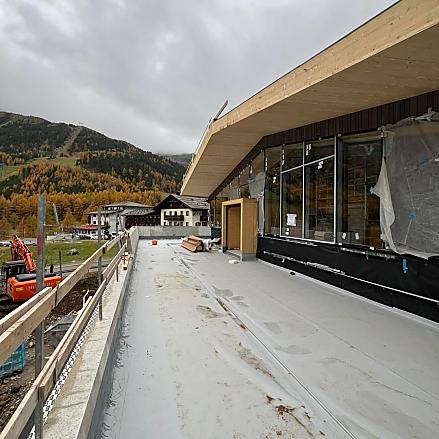 Die Arbeiten für das Restaurant, die Bar und den Après-Ski-Bereich laufen ebenfalls auf Hochtouren, das Dach des Restaurants wird zurzeit installiert. Zusätzlich werden Installationsarbeiten durchgeführt, und die letzten Wartungsarbeiten an der Gletscherbahn fanden vom 9. bis 19. September statt.