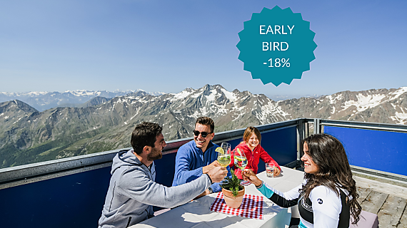 Ein längerer Aufenthalt in unserem Hotel im Schnalstal zahlt sich aus. Nicht nur haben Sie in einer Woche genügend Zeit, Ihren Gletscherabenteuer auszukosten. In ausgewählten Zeiträumen profitieren Sie von weiteren Vorteilen, wie unseren Gletscher-Angeboten mit Skipass oder vergünstigten Skipauschalen am Schnalstaler Gletscher. Entdecken Sie unsere aktuellen Pakete und sicheren Sie sich eines der sportlichen Gletscher-Pauschalangebote!