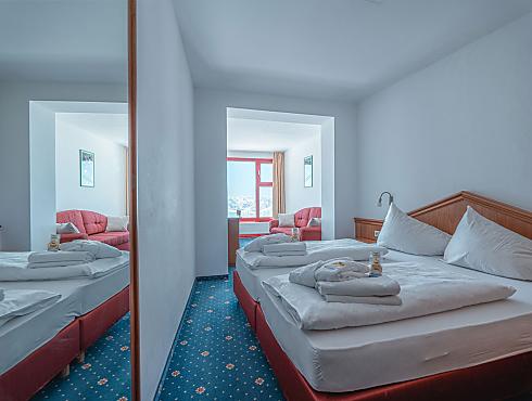 In addition to the comfortable double bed, the room also features a practical sofa bed – perfect for relaxing with a book or as an extra sleeping option for a child.