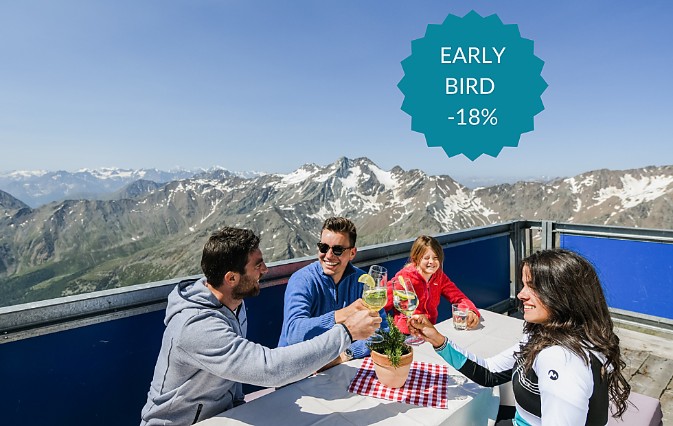 Pianificate in anticipo e ottenete un doppio vantaggio: chi prenota entro il 09.05.2026 riceve il 18% di sconto sul prezzo giornaliero per un soggiorno minimo di due notti durante tutta la stagione.