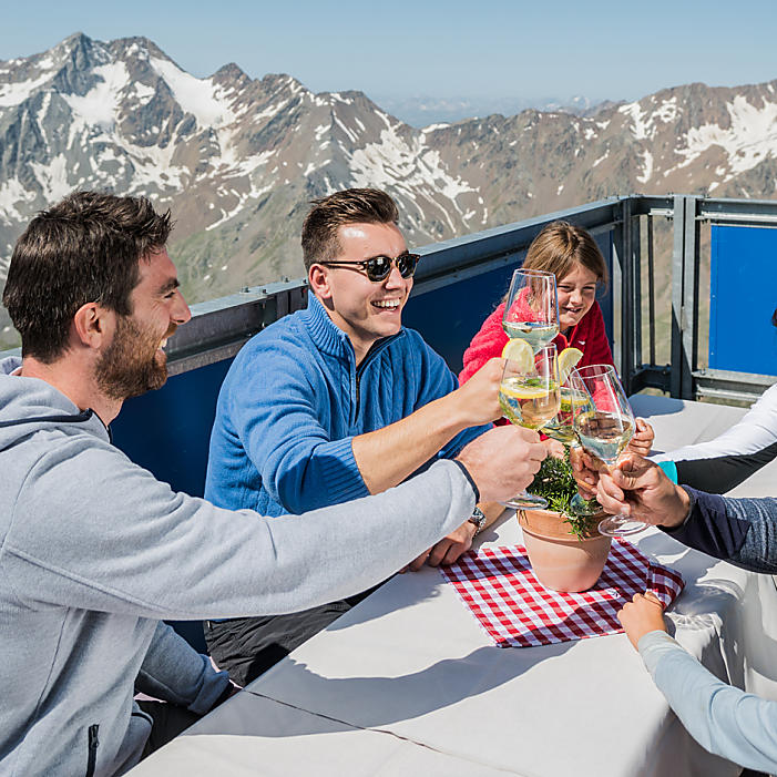 In inverno, quando i nostri ospiti non vedono l’ora di tornare sulle piste per allenarsi o divertirsi sugli sci, è possibile usufruire del nostro ristorante self-service in Val Senales sul ghiacciaio. In estate, invece, vi serviremo personalmente, preferibilmente sulla terrazza panoramica illuminata dal sole.