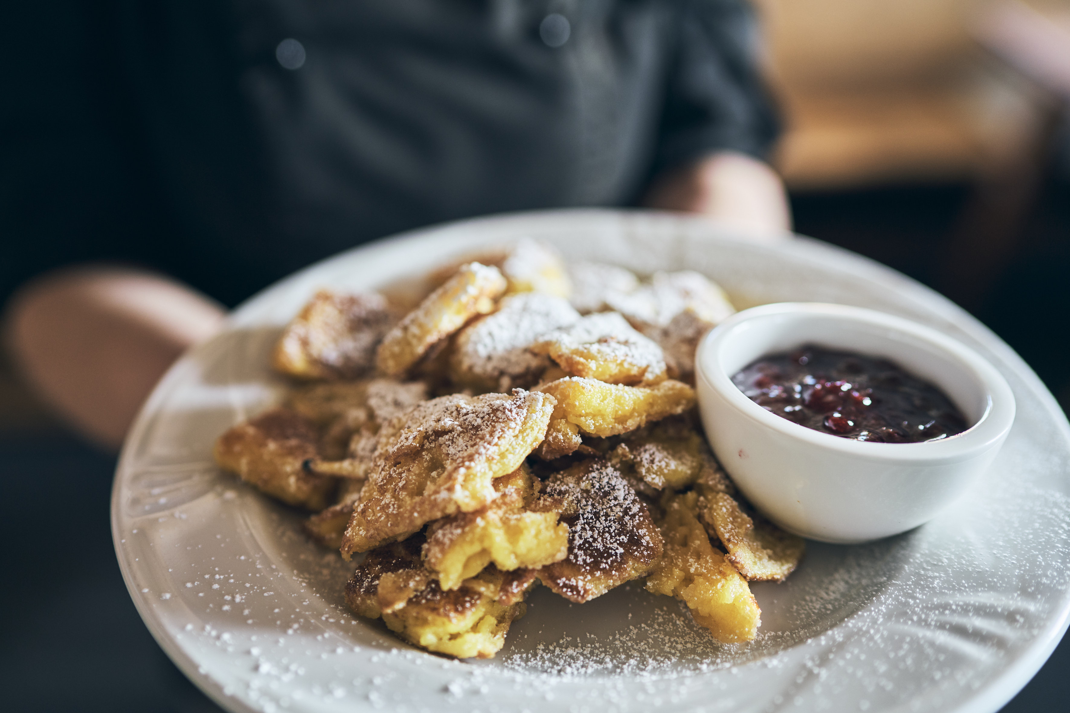 Dining on the mountain has its own special quality. If someone joins us at the table, we make room. When hunger comes, it's time to eat. When a glass is raised in celebration, we smile at each other. Time is filled with essentials. And with pure quality.